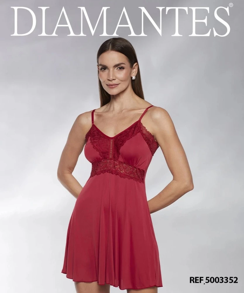 CAMISOLA LINHA NOITE S/BOJO C/RENDA DESEJO ADULTO DIAMANTES