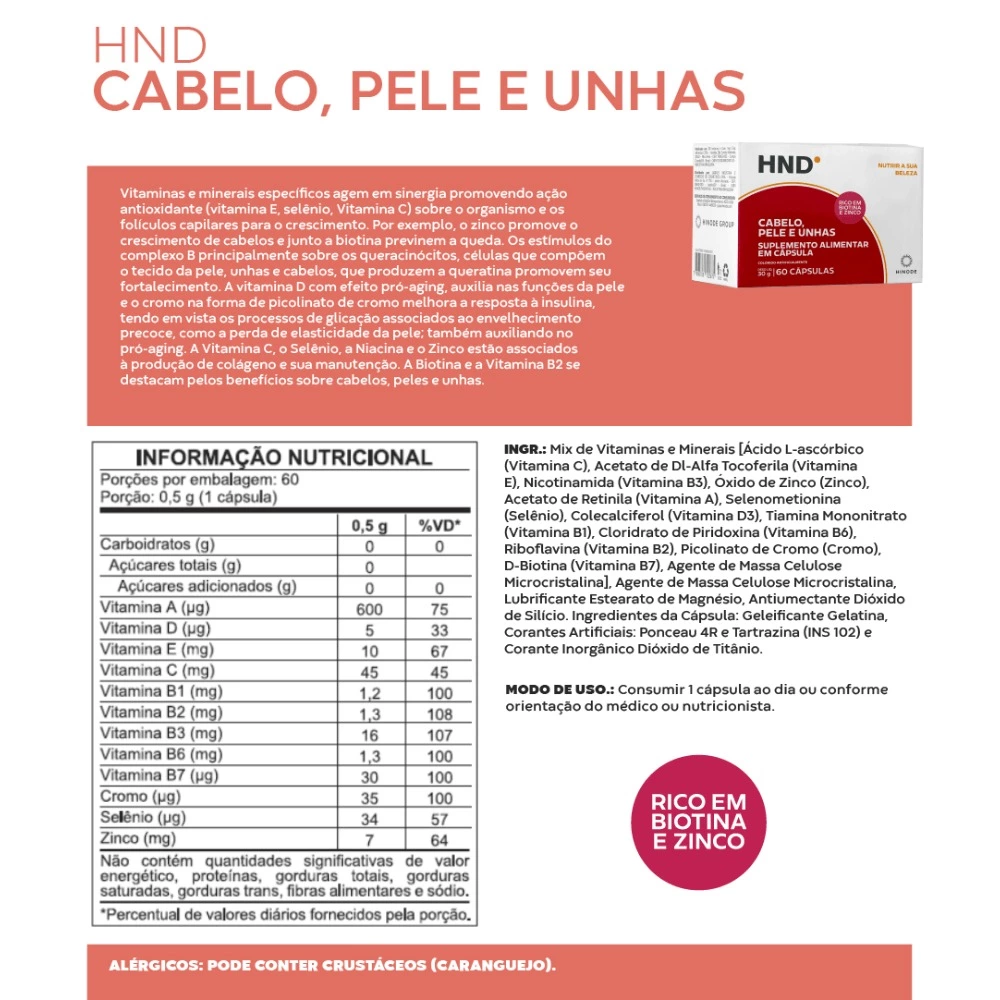 Com uma fórmula rica em vitaminas A, C, B1, B2, B6, B7 (biotina) e Selênio, este suplemento auxilia na saúde e no fortalecimento do cabelo, pele e unhas, além de contribuir para a imunidade e combater os danos causados pelos radicais livres.