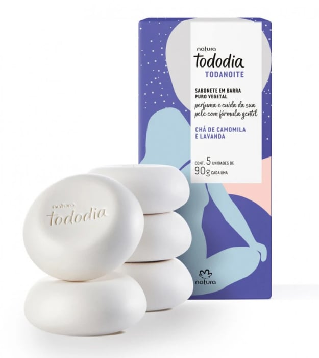 CAIXA DE SABONETE PURO VEGETAL TODODIA TODANOITE CHÁ DE CAMOMILA E LAVANDA UNISSEX NATURA - CX C/5UND