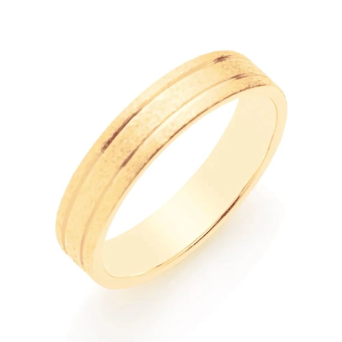 Aliança aro escovado e 2 frisos com medida 4,30mm de largura.