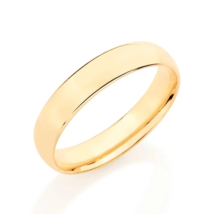 Aliança lisa anatômica com 4,30 mm de largura por 1,30 mm de espessura.