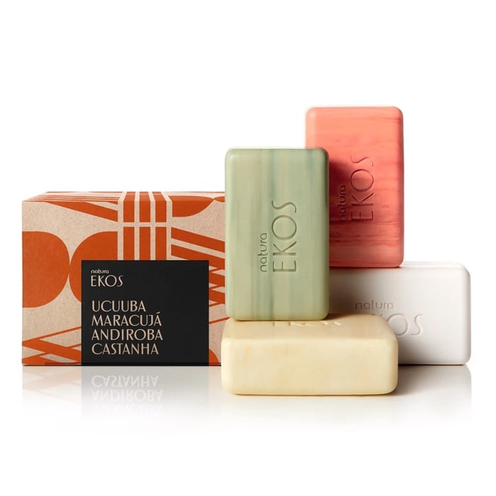 Os Sabonetes Natura Ekos proporcionam múltiplas sensações e amplo cuidado com você e a Amazônia. Em cada barra, óleo 100% vegetal puro da Amazônia e fórmulas biodegradáveis exclusivas, que protegem, perfumam e limpam sem ressecar, mantendo a hidratação natural da pele. Esta caixa é uma ótima opção para presente, com barras cremosas em quatro fragrâncias queridinhas de Natura Ekos.