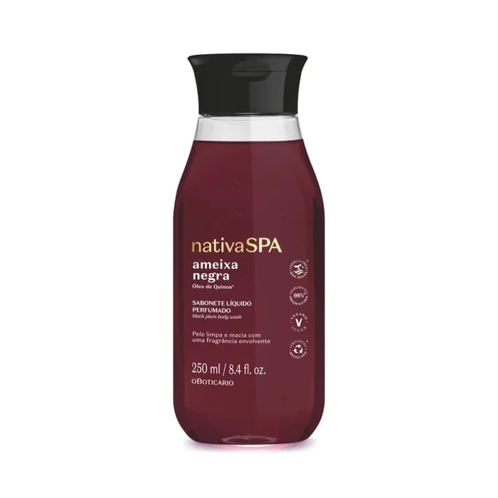 SABONETE LÍQUIDO PERFUMADO NATIVA SPA AMEIXA NEGRA UNISSEX BOTICÁRIO - 250ML