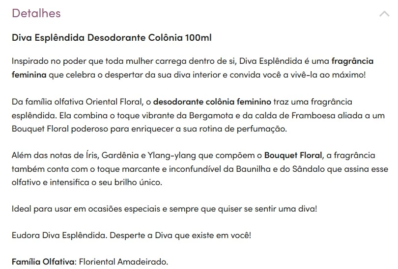 Inspirado no poder que toda mulher carrega dentro de si, Diva Esplêndida é uma fragrância feminina que celebra o despertar da sua diva interior e convida você a vivê-la ao máximo!