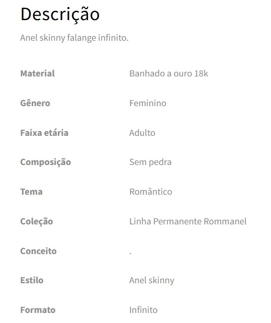 Folheados da Rommanel tem garantia de 2 anos para defeito de fabricação, exceto alianças e peças infantis.