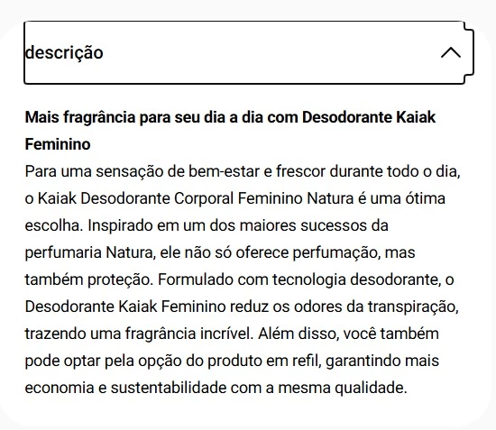 DESODORANTE CORPORAL KAIAK FEMININO NATURA - 100ML
