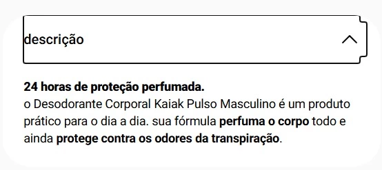 o Desodorante Corporal Kaiak Pulso Masculino é um produto prático para o dia a dia. sua fórmula perfuma o corpo todo e ainda protege contra os odores da transpiração.