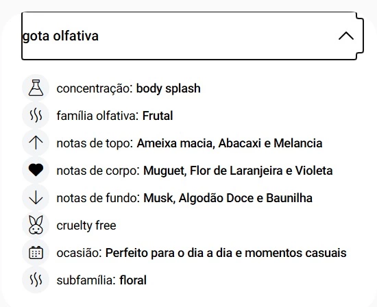 notas de topo: Ameixa macia, Abacaxi e Melancia