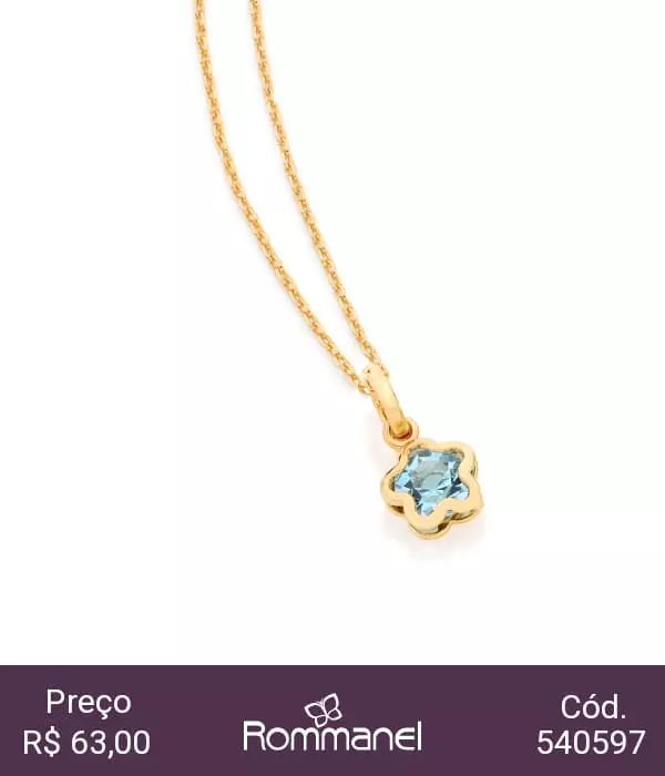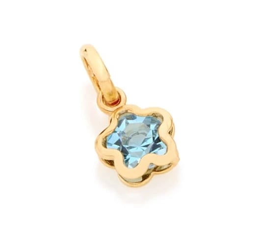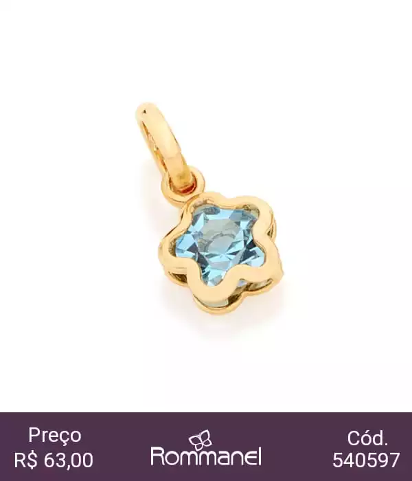 PINGENTE BANHADO A OURO 18K FLOR COM CRISTAL AZUL CLARO 540597 ROMMANEL