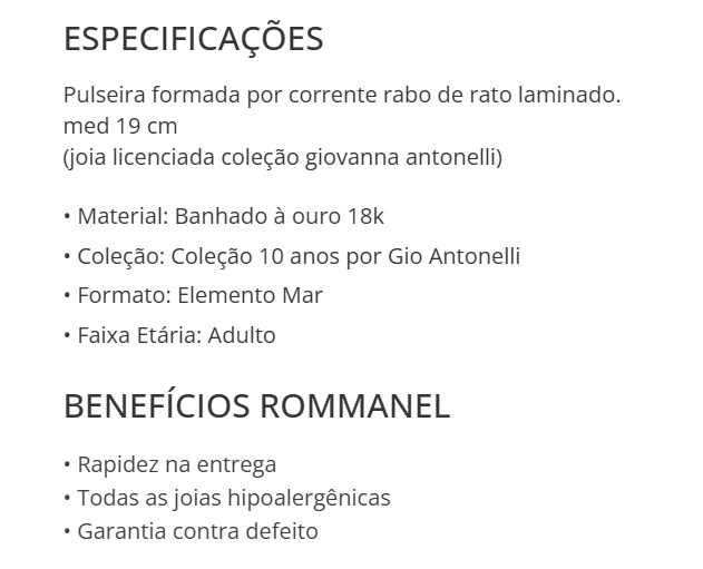 PULSEIRA RABO DE RATO BANHADA A OURO 18K - TAM.19 552031 ROMMANEL