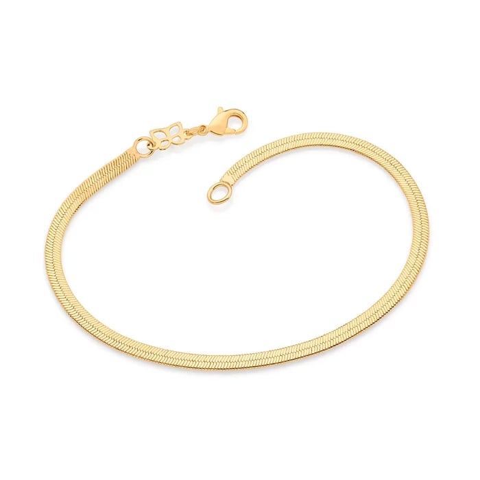 Pulseira formada por corrente rabo de rato laminado.
