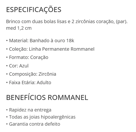 BRINCO CORAÇÃO BANHADO A OURO 18K COM ZIRCÔNIAS 522396 TAM.ÚNICO ROMMANEL