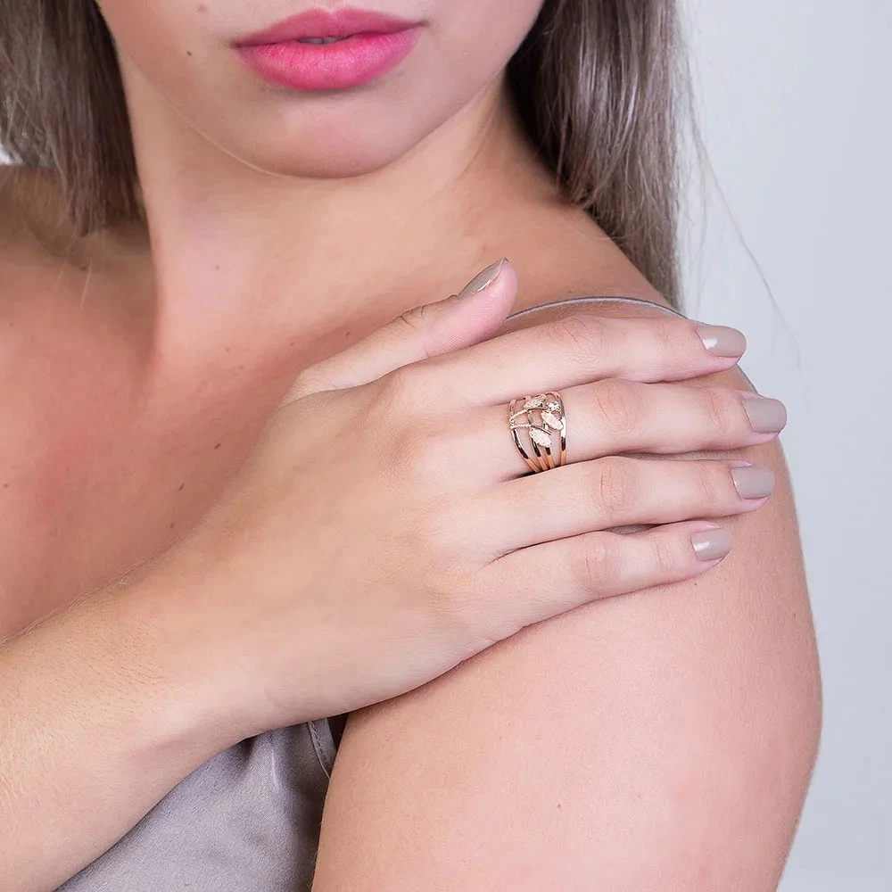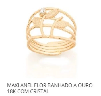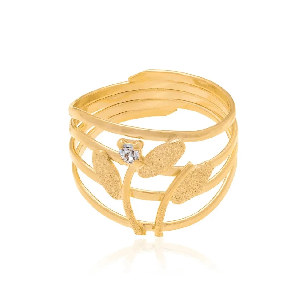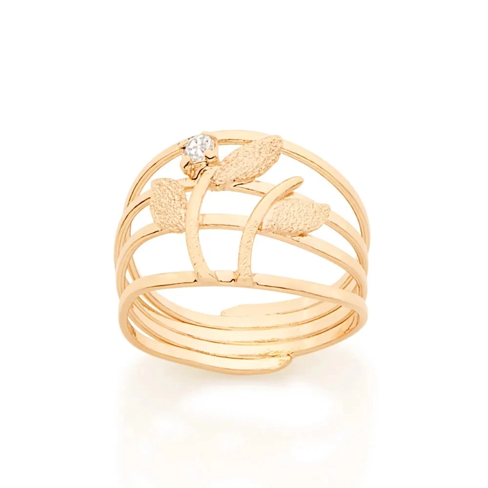 MAXI ANEL FLOR BANHADO A OURO 18K COM CRISTAL 510092 ROMMANEL