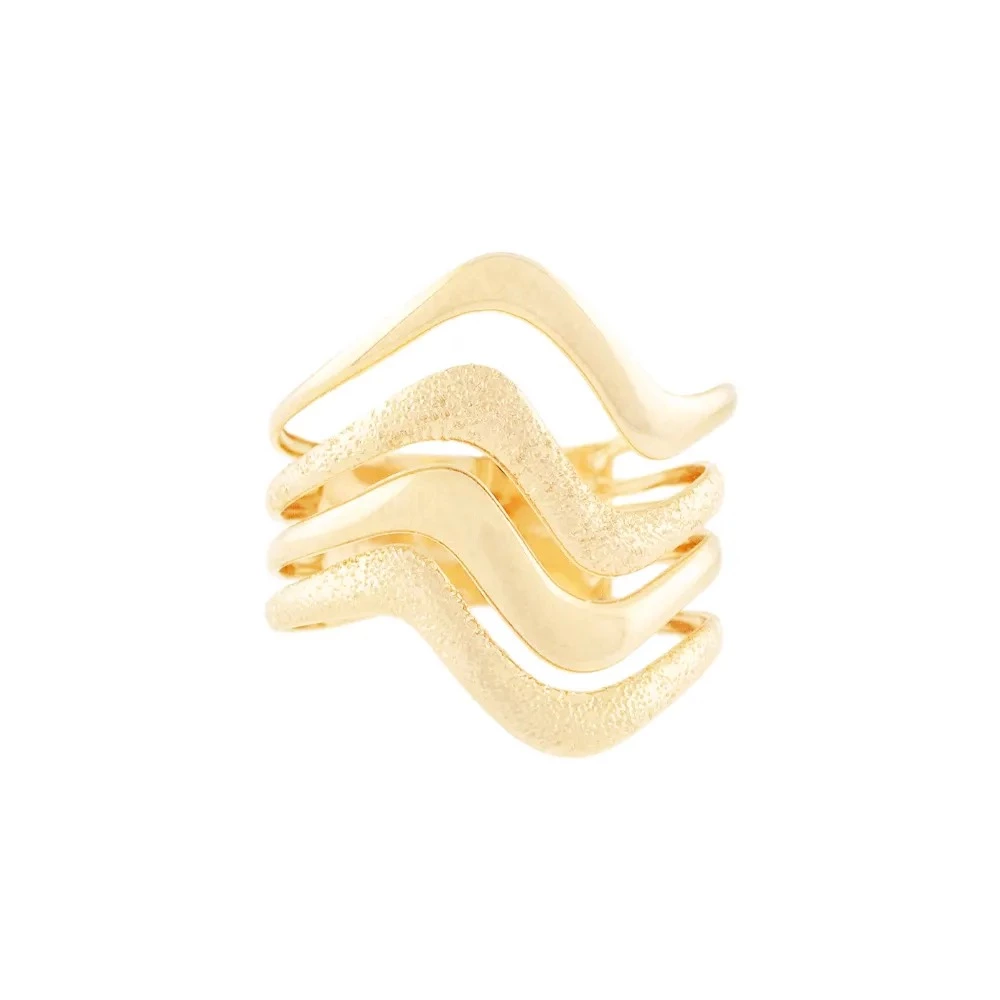 MAXI ANEL COM ONDAS VAZADAS BANHADO A OURO 18K 510831 ROMMANEL