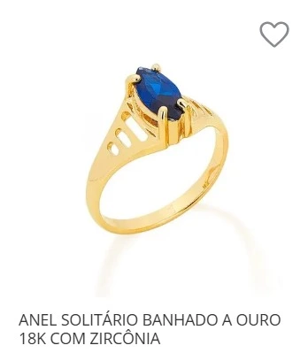 ANEL SOLITÁRIO BANHADO A OURO 18K COM ZIRCÔNIA 511181 ROMMANEL
