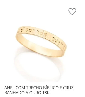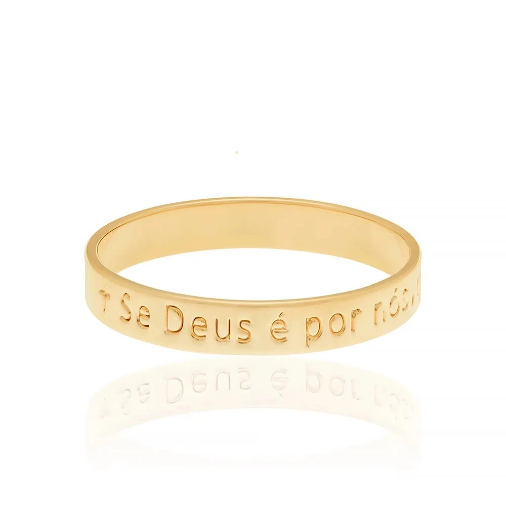 ANEL COM TRECHO BÍBLICO E CRUZ BANHADO A OURO 18K 511588 ROMMANEL