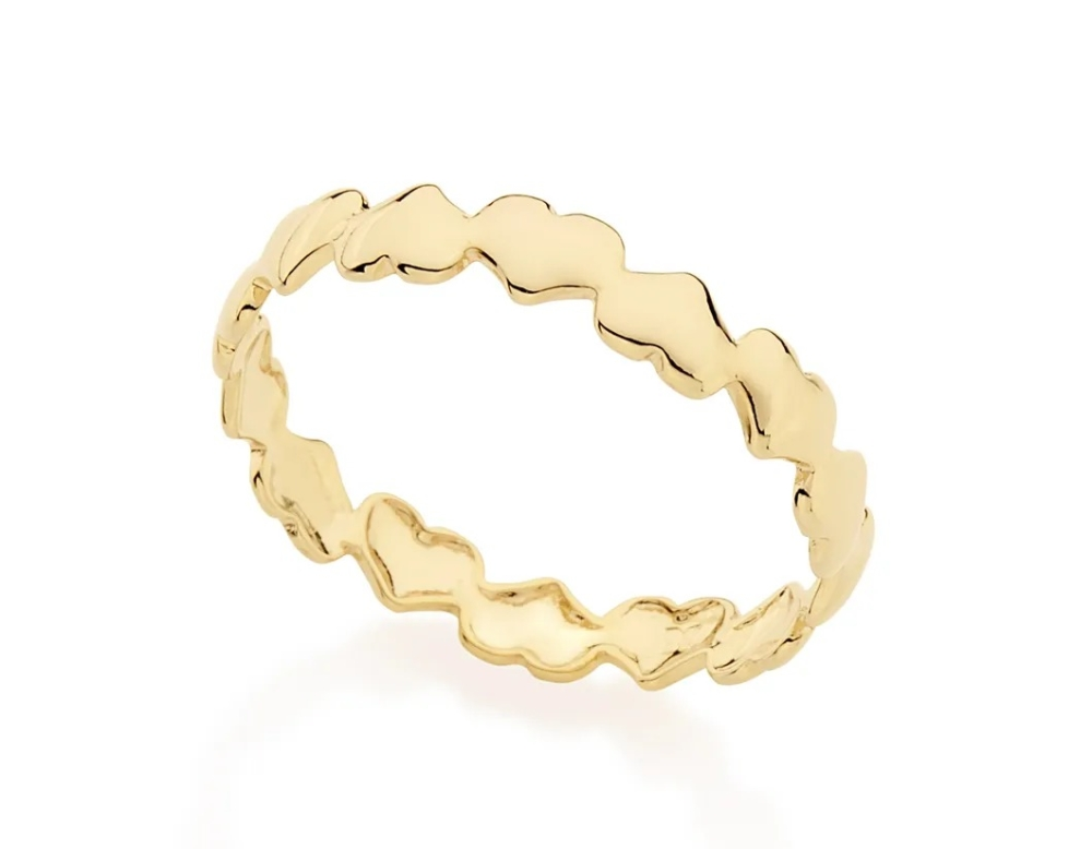 ANEL BANHADO A OURO 18K COM ARO NO FORMATO DE CORAÇÕES 512156 ROMMANEL