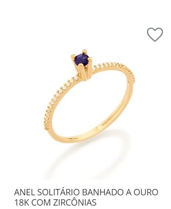 ANEL SOLITÁRIO BANHADO A OURO 18K COM ZIRCÔNIAS 512902 ROMMANEL
