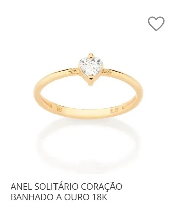 ANEL SOLITÁRIO CORAÇÃO BANHADO A OURO 18K 513029 ROMMANEL