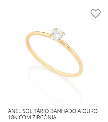 ANEL SOLITÁRIO BANHADO A OURO 18K COM ZIRCÔNIA 513053 ROMMANEL