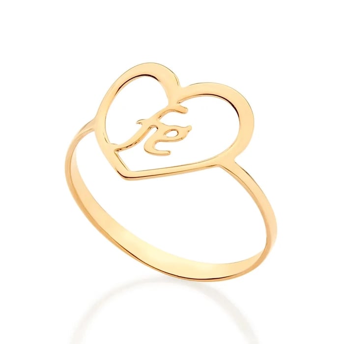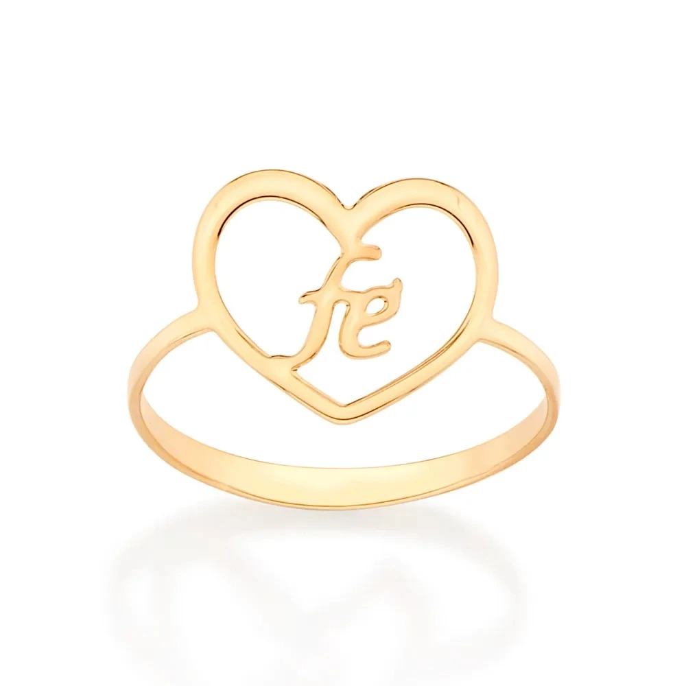ANEL SKINNY CORAÇÃO ESCRITO FÉ BANHADO A OURO 18K 513069 ROMMANEL