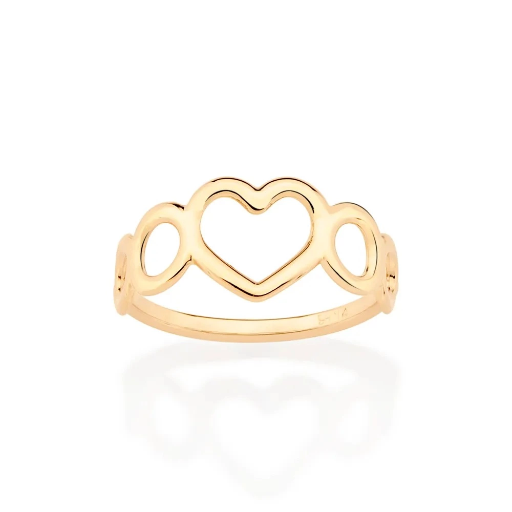ANEL CORAÇÃO E CÍRCULOS BANHADO A OURO 18K 513296 ROMMANEL