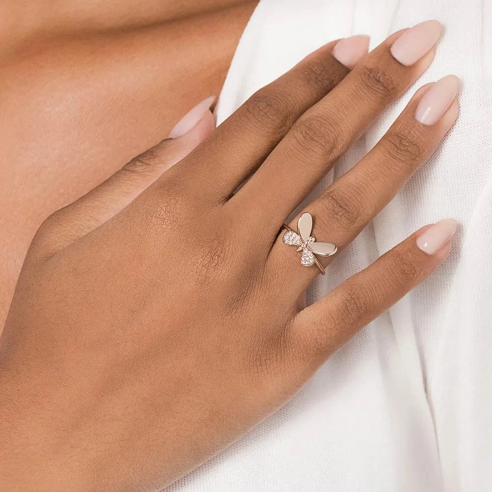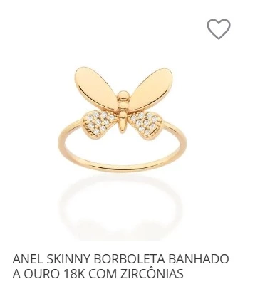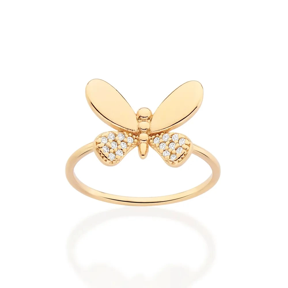 ANEL SKINNY BORBOLETA BANHADO A OURO 18K COM ZIRCÔNIAS 513481 ROMMANEL
