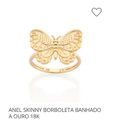 ANEL SKINNY BORBOLETA BANHADO A OURO 18K 513482 ROMMANEL