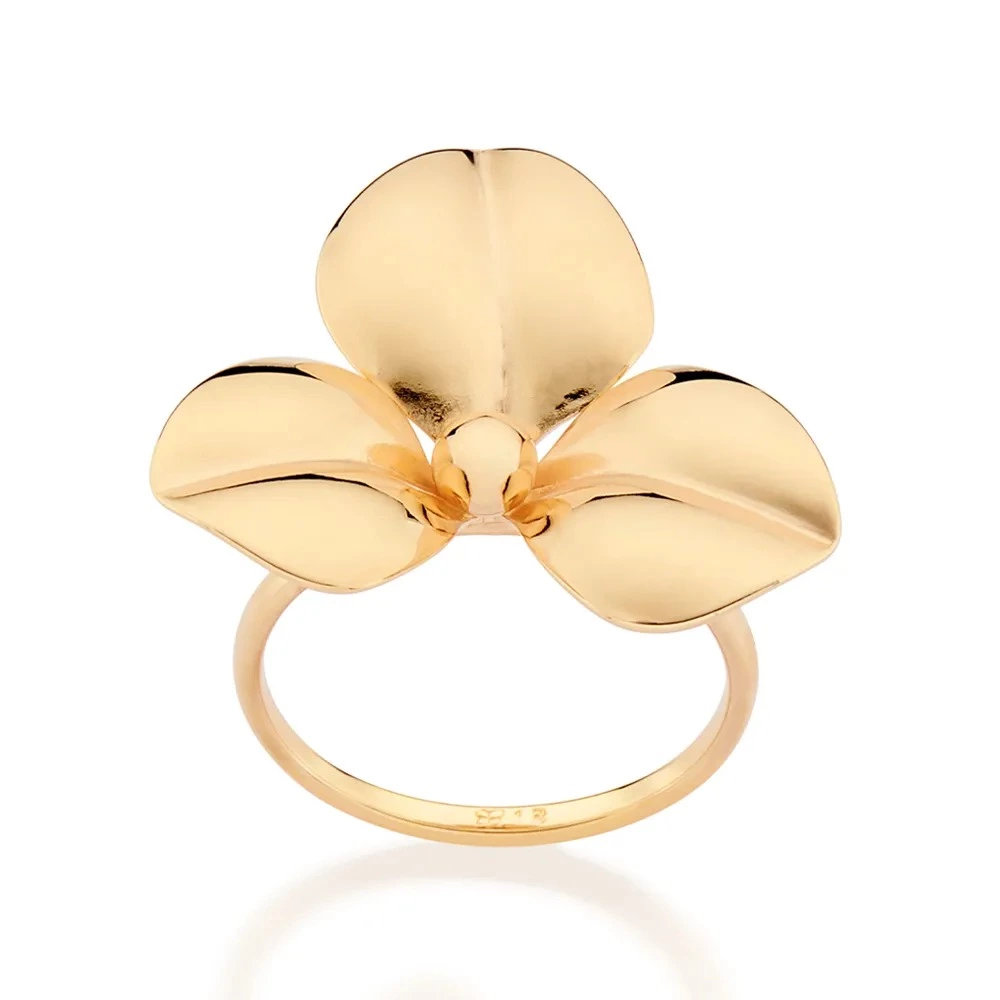 ANEL SKINNY COM FLOR ABAULADA BANHADO A OURO 18K 513497 ROMMANEL