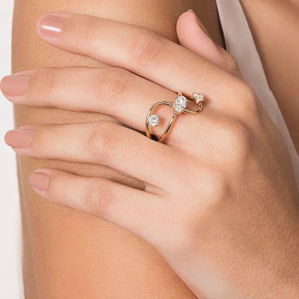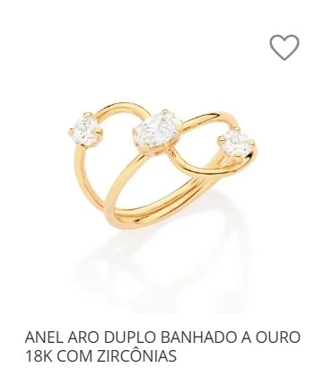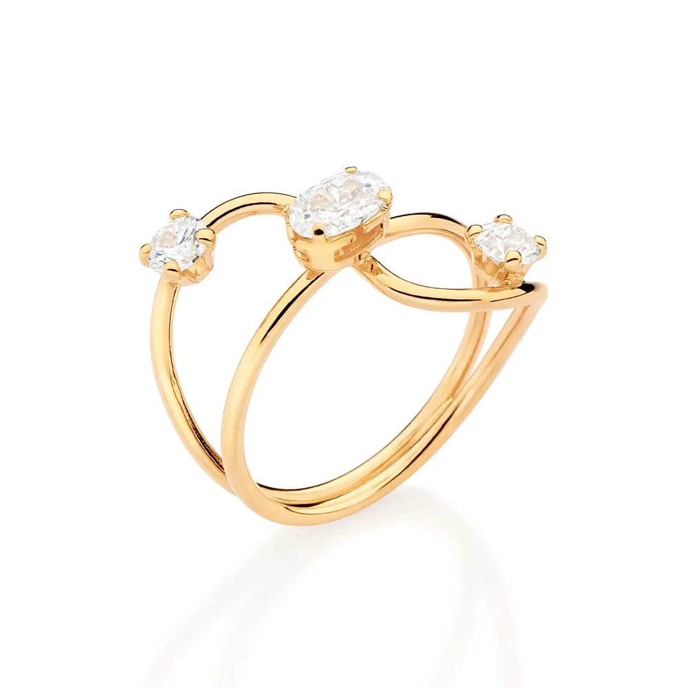 ANEL ARO DUPLO BANHADO A OURO 18K COM ZIRCÔNIAS 513510 ROMMANEL