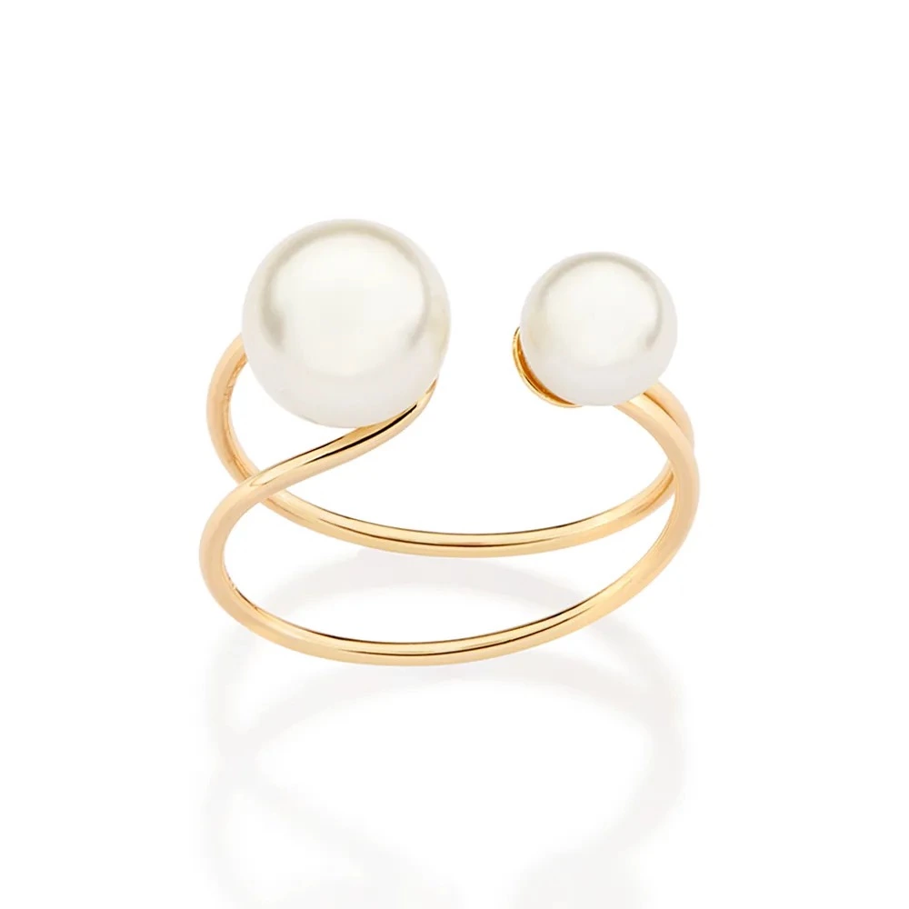 ANEL ARO DUPLO AJUSTÁVEL BANHADO A OURO 18K COM PÉROLAS SINTÉTICAS 513544 ROMMANEL