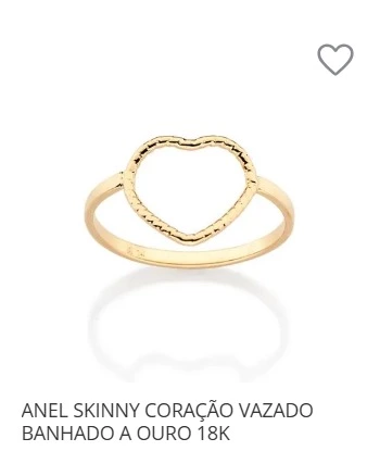 ANEL SKINNY CORAÇÃO VAZADO BANHADO A OURO 18K 513545 ROMMANEL