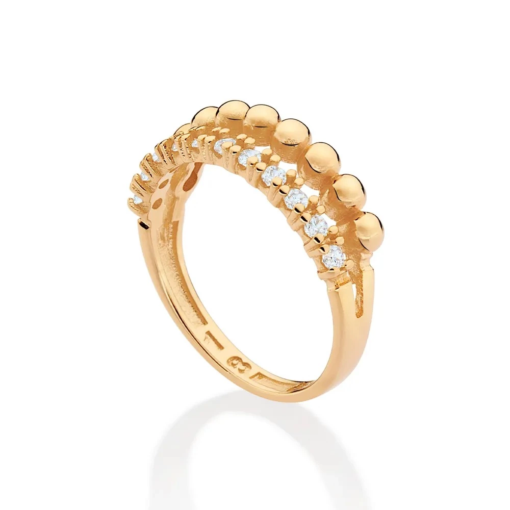 ANEL ARO DUPLO BANHADO A OURO 18K COM ESFERAS E ZIRCÔNIAS 513551 ROMMANEL