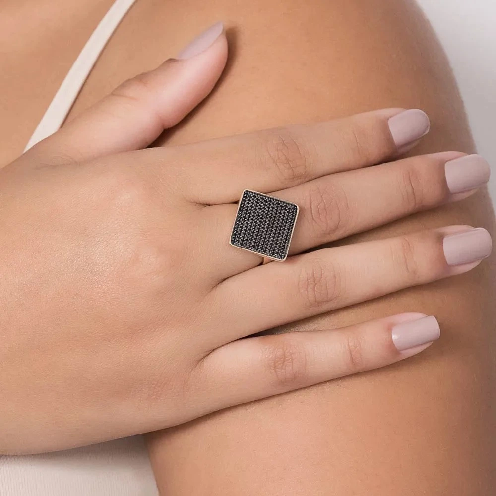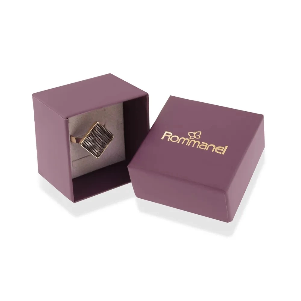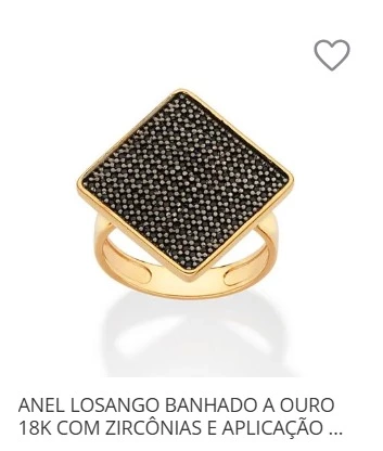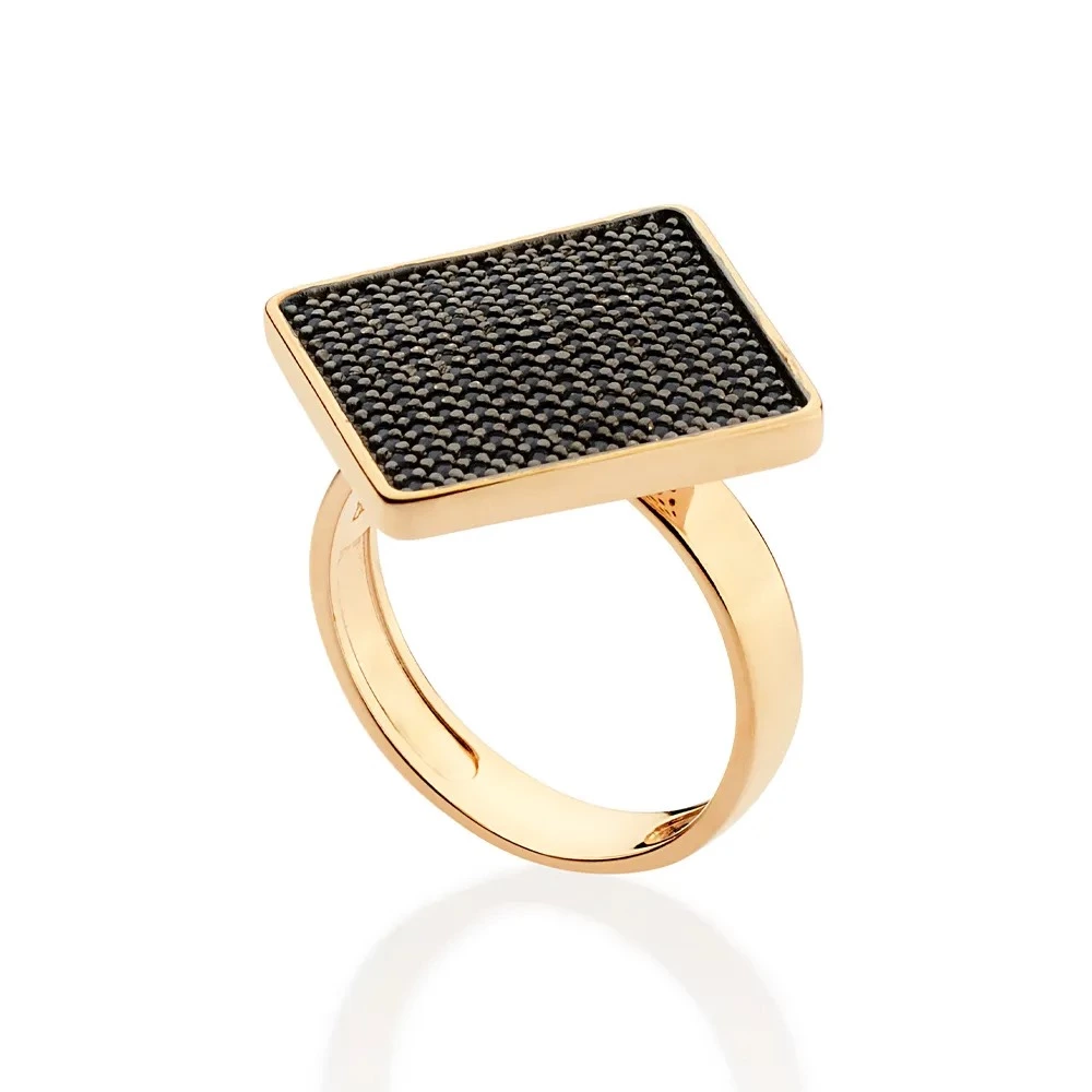 ANEL LOSANGO BANHADO A OURO 18K COM ZIRCÔNIAS E APLICAÇÃO DE RHODIUM NEGRO 513552 ROMMANEL