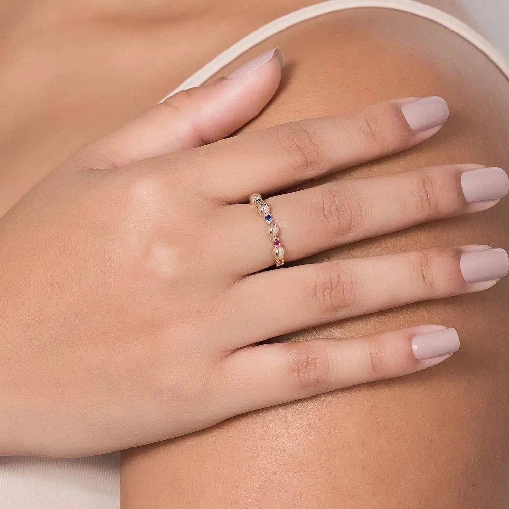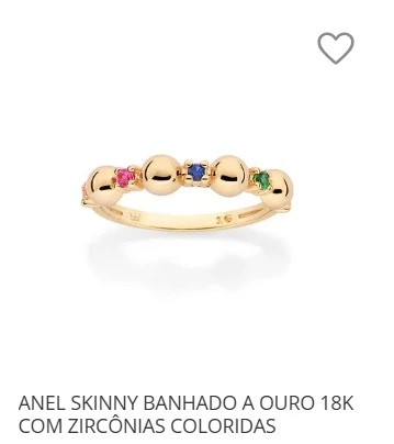 ANEL SKINNY BANHADO A OURO 18K COM ZIRCÔNIAS COLORIDAS 513554 ROMMANEL